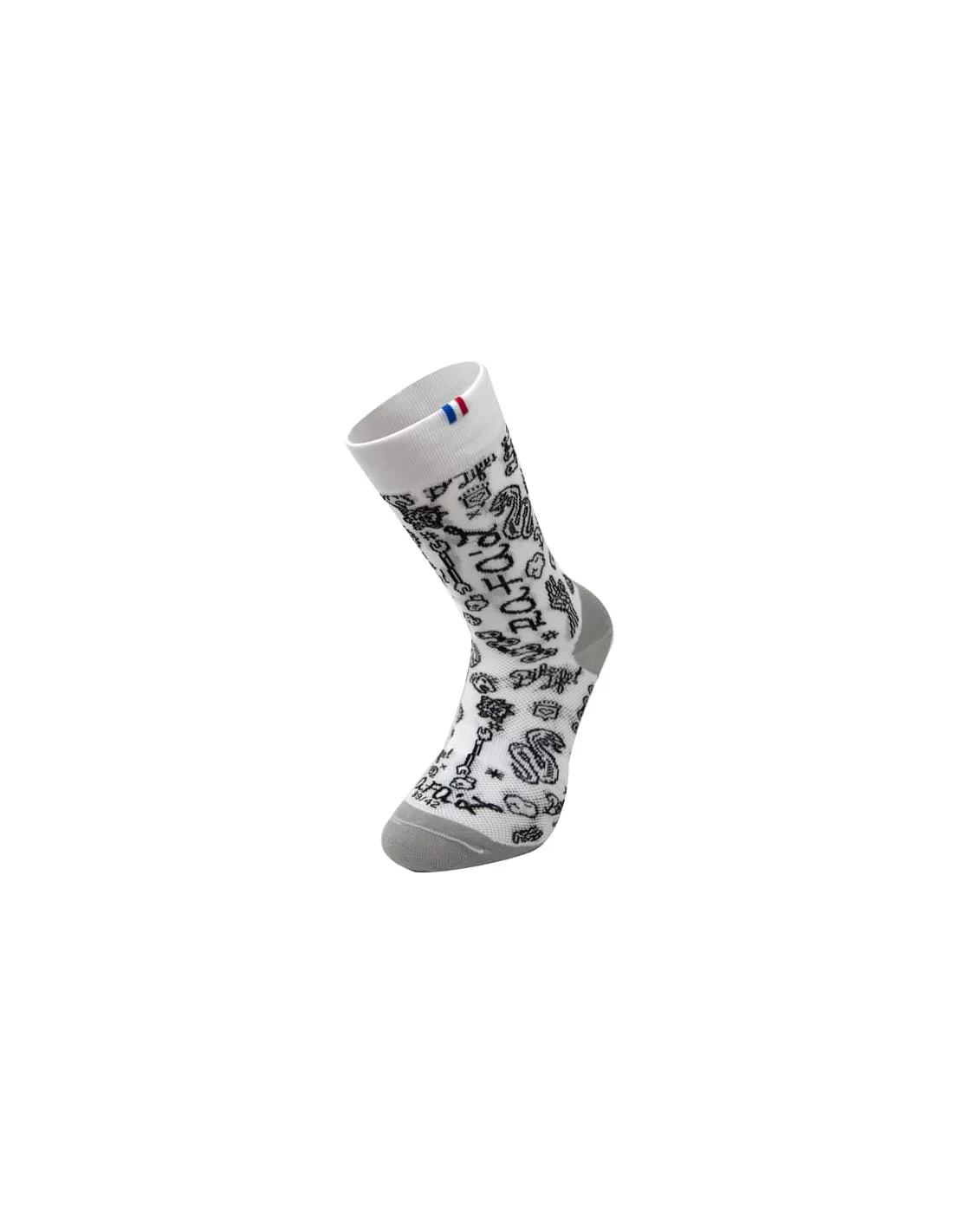 Hergestellt in Frankreich, vereinen diese Socken ein ultraventiliertes Netzgewebe, das die Thermoregulierung des Fußes ermöglicht und Feuchtigkeit ableitet, sowie Fersen- und Zehenverstärkungen aus Resistex, einem mit Kohlenstoff angereicherten Stoff, der äußerst widerstandsfähig, atmungsaktiv, thermoregulierend und antibakteriell ist.
