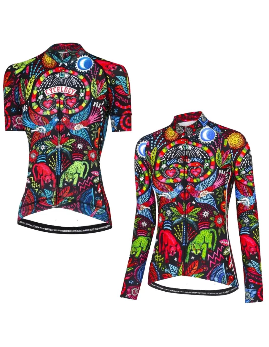 Deze Cycology Jungle dames fietskleding set combineert een korte mouw en een lange mouw jersey in het kenmerkende Jungle-design. Ideaal voor wisselende weersomstandigheden en verschillende seizoenen. De shirts zijn gemaakt van comfortabele, ademende materialen met een sportieve pasvorm, zodat je optimale bewegingsvrijheid en ventilatie ervaart tijdens elke rit. Met praktische achterzakken en een hoogwaardige afwerking is deze set perfect voor fietsers die functionaliteit willen combineren met een opvallende, artistieke uitstraling.